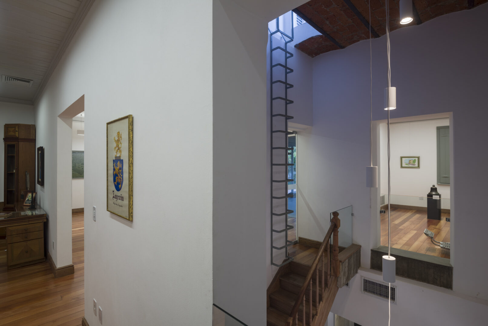 Internamente, em função da alteração de uso e, consequentemente, de suas novas necessidades, inclusive pela questão de caráter, optou-se por eliminar o entrepiso do hall criando um vazio interno para orientar e organizar a circulação dos visitantes. Uma das antigas escadas de madeira foi preservada e a outra, que levava ao terraço, foi substituída por uma escada de marinheiro de aço corten. O reboco do forro deste espaço, que escondia a abobadilha do teto, foi retirado. Os demais espaços mantiveram seus aspectos originais, mas lajes de concreto foram introduzidas sobre os forros em substituição aos caibros antigos abrindo espaço para a infraestrutura necessária.