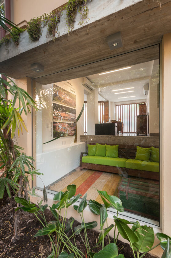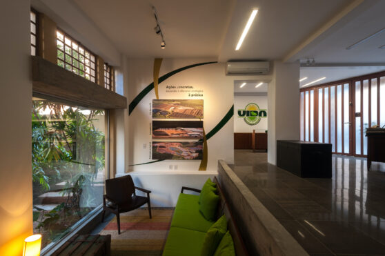 O projeto de restauro lidou com as três referências já citadas: a da memória da residência e escritório do arquiteto e aquarelista que a projetou e construiu em 1931; a das atividades dos ecologistas; e as relativas às atividade profissionais que deram origem a Vida. Como as necessidades do programa eram maiores do que a casa, e também pela necessidade de implantar um elevador, foi preciso fazer um aumento de área construída. Funcionalmente, não há distinção entre as partes antigas e novas. Tudo funciona como um prédio único. Nos andares superiores funcionam as atividades administrativas da empresa e no pavimento térreo temos um pequeno auditório, sala de reuniões, recepção, café, sanitário, o Espaço Lutzenberger, voltado à memória do ecologista, e um estar que tem uma grande vidraça para o jardim. Externamente, o jardim tombado faz a ligação ao anexo dos fundos e serve como lazer e descanso dos funcionários.
